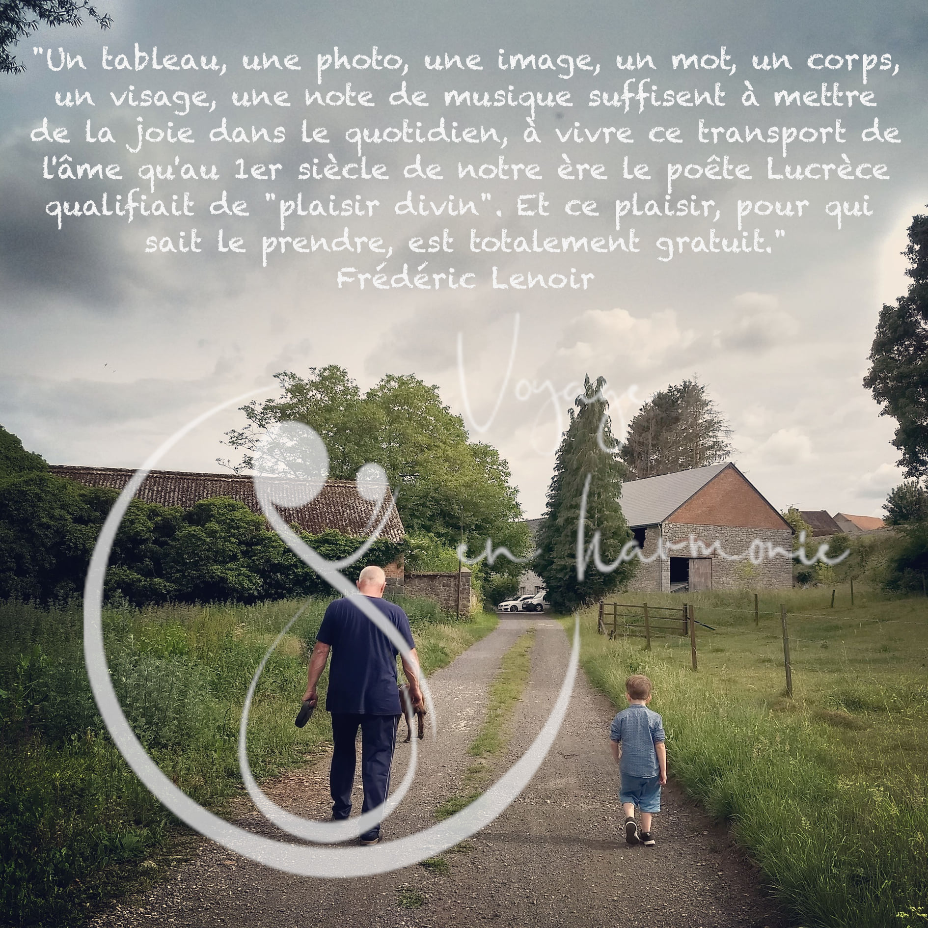 J’adore cette photo de notre fils et de son grand-père, prise au détour d’une balade en famille cet été. Lorsque je la regarde, je peux sentir la joie qu’elle me procure jusqu’au plus profond de mes cellules. Je suis en lien avec les odeurs, les conversations, les partages et les rires.