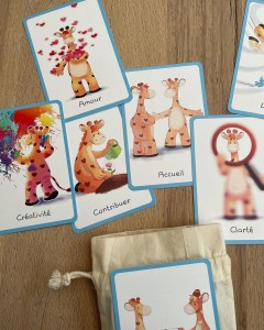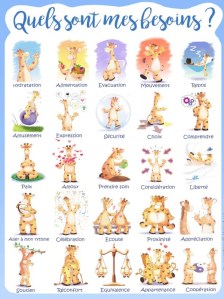 Apprentie girafe m’honore de sa confiance en mettant à ma disposition quelques jeux de cartes des Émotions et des Besoins, ainsi que les Maxi Posters des Sentiments et des Besoins ![]()